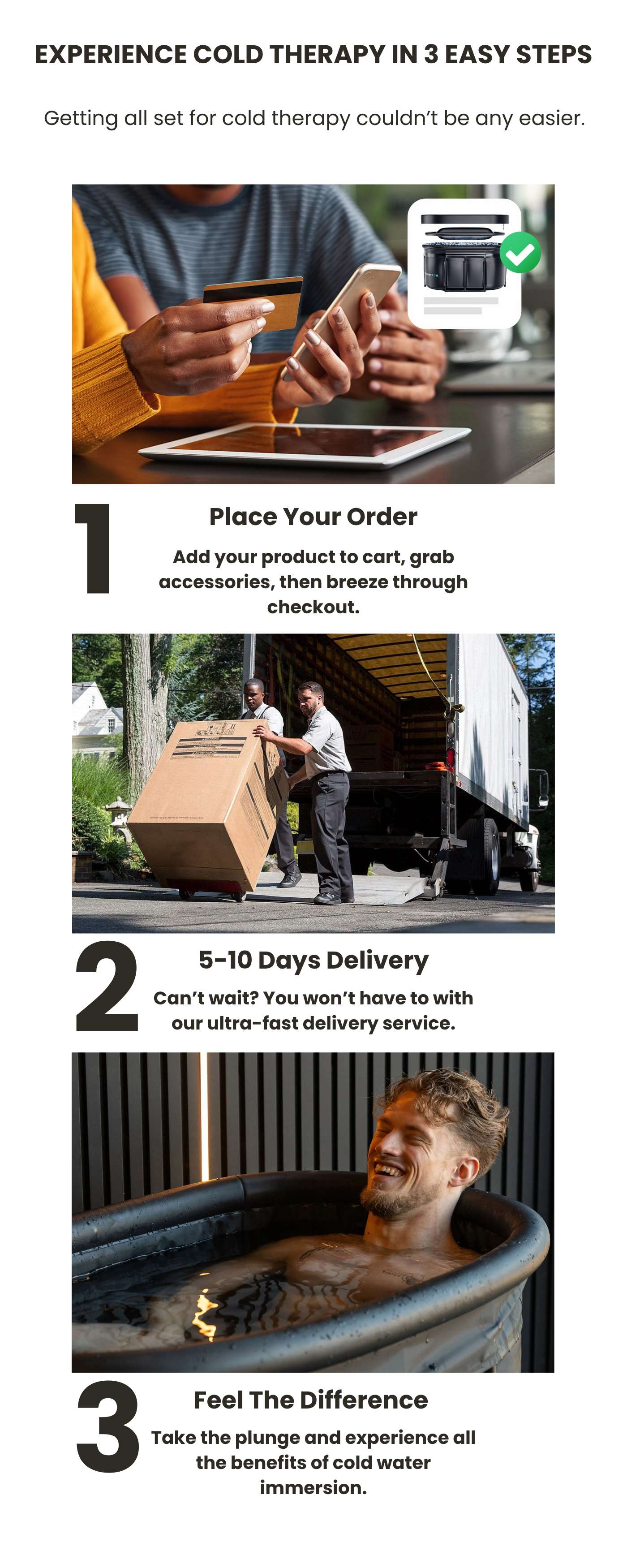 For beginners, we recommend starting with a water temperature of around 15°C. As you become more accustomed to the ice bath, you can gradually lower the temperature and increase the duration of each session. This gradual adaptation allows your body to comfortably acclimate to the cold temperatures.