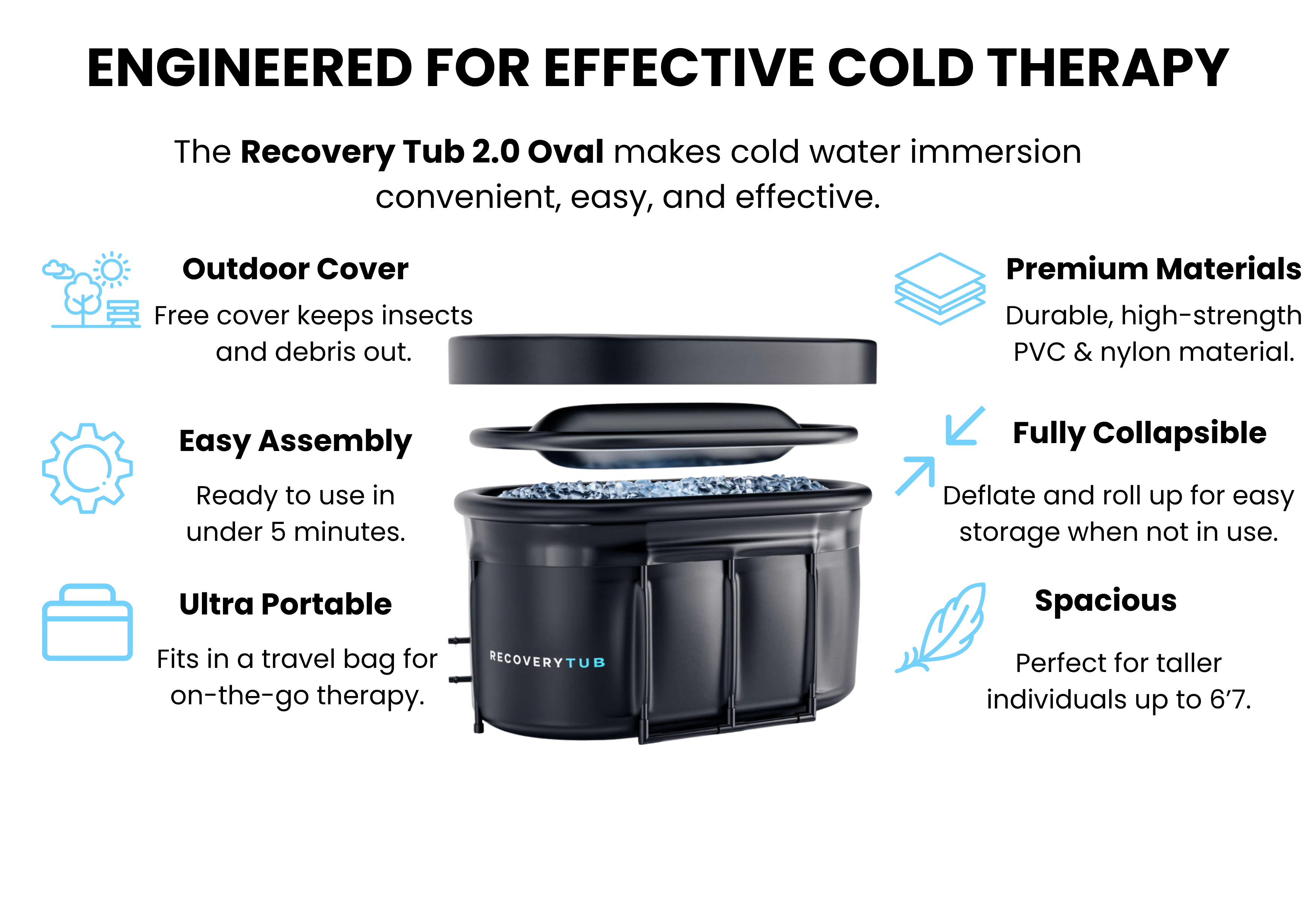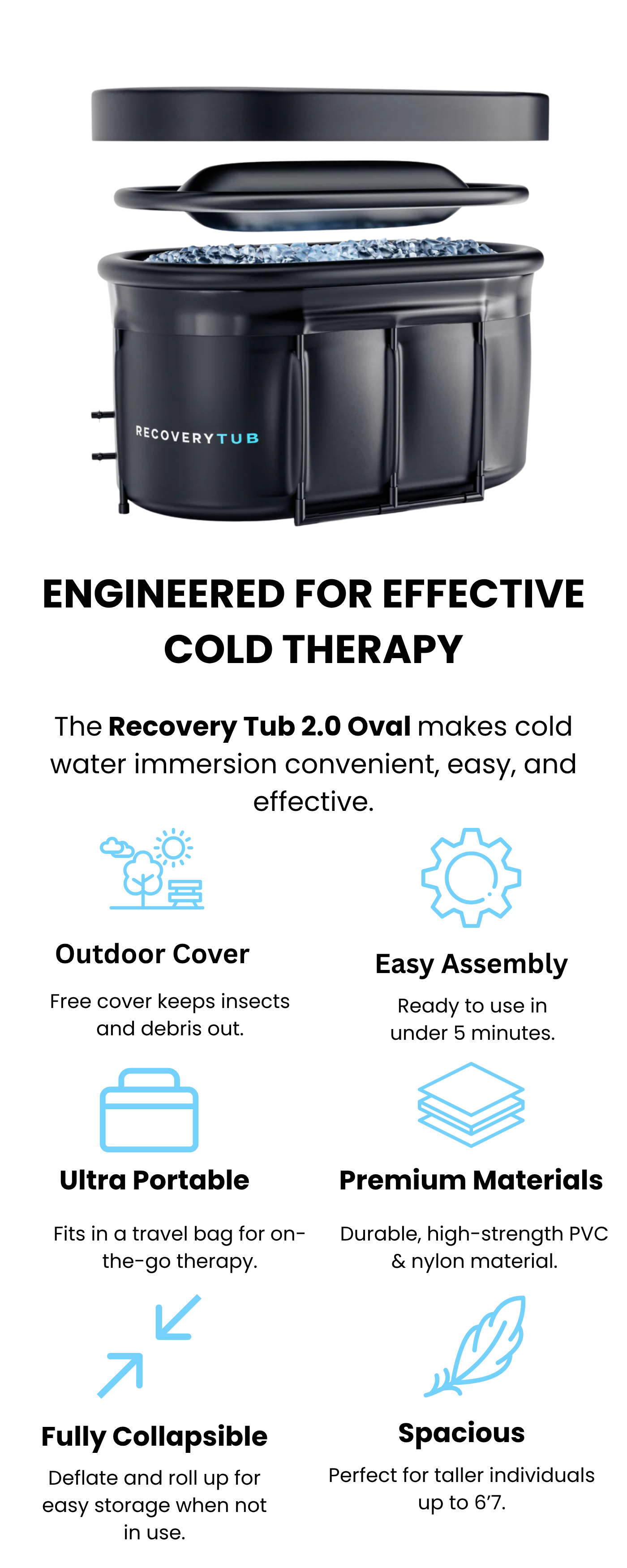 The 2.0 Oval has 3 x more insulation than the standard tub to keep the water colder for longer. The oval tub also has a much larger capacity making it more comfortable for larger individuals.